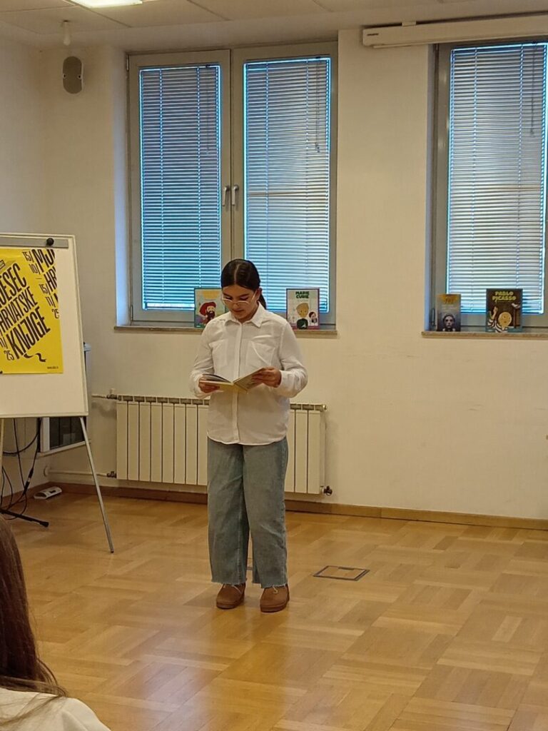 Našu školu u mlađoj kategoriji predstavljala je Karla Kordić, učenica 3. c razreda, koja je osvojila prvo mjesto i time se plasirala na Državno natjecanje u čitanju naglas koje će se održati u Sisku.