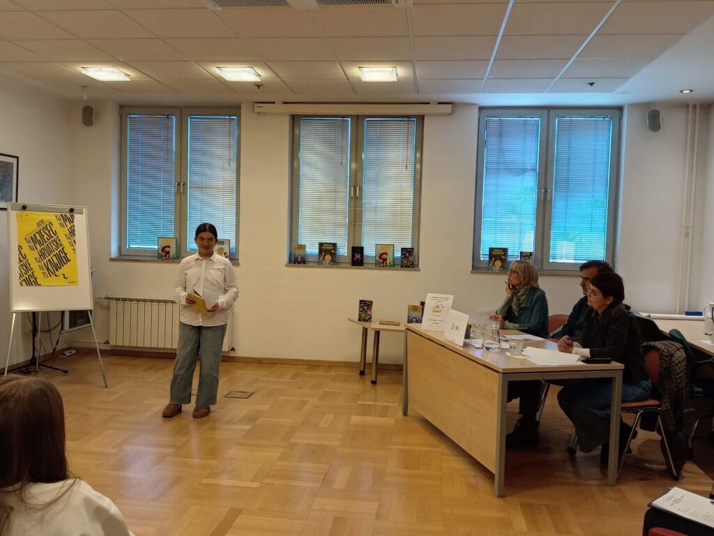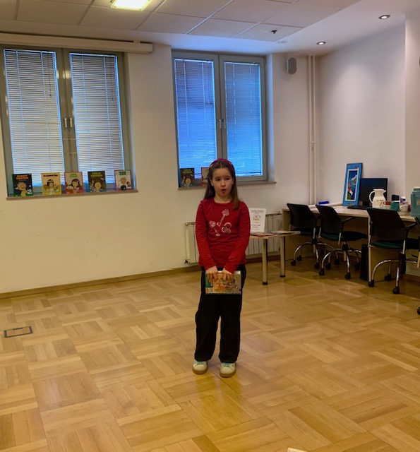 U starijoj kategoriji školu je predstavljala Jana Čengija, koja je također imala izvrstan nastup i dostojno predstavljala našu školu. U pratnji knjižničarki djevojčice su prijepodne provele u društvu književnika (članova žirija na natjecanju) i prijatelja čitanja. Čestitamo i Karlinoj učiteljici Suzani Rauker i Janinoj učiteljici hrvatskog Hani Hafner.