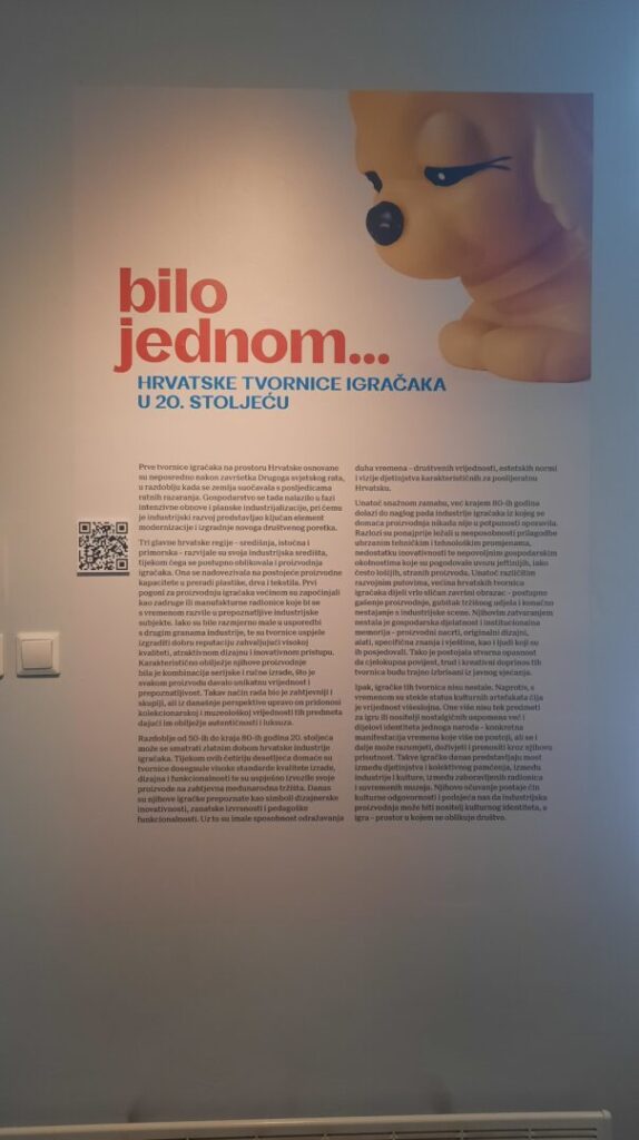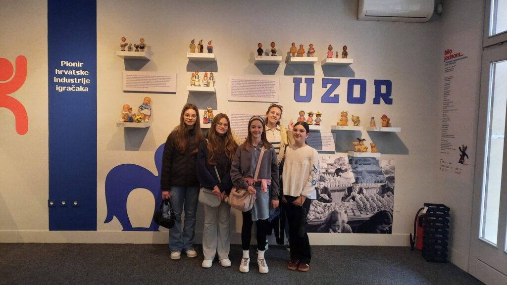 U petak, 10.4.2026., posjetili smo Galeriju Školica za 5 Hrvatskog školskog muzeja, gdje smo razgledali izložbu „Bilo jednom… hrvatske tvornice igračaka u 20. stoljeću”. Izložba donosi pregled razvoja domaće industrije igračaka, s posebnim osvrtom na tvornice Biserka, UZOR, Jugoplastika, 25. maj – Labin, TIK – TIK Krapina, koje su tijekom druge polovice 20. stoljeća oblikovale svijet igre generacija djece.