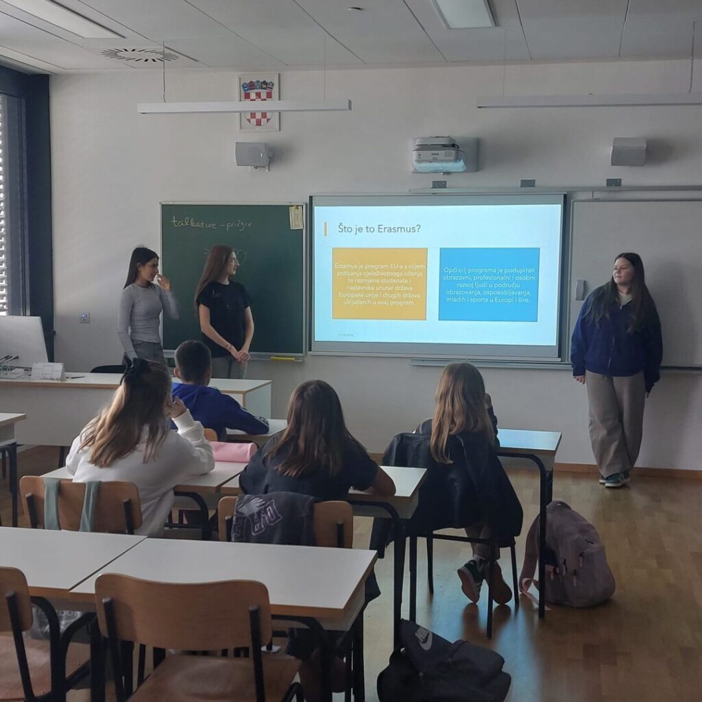 Povodom obilježavanja Erasmus+ dana, naši su učenici predstavili iskustva s mobilnosti u Njemačku i Sloveniju učenicima – predstavnicima Vijeća učenika.