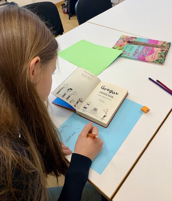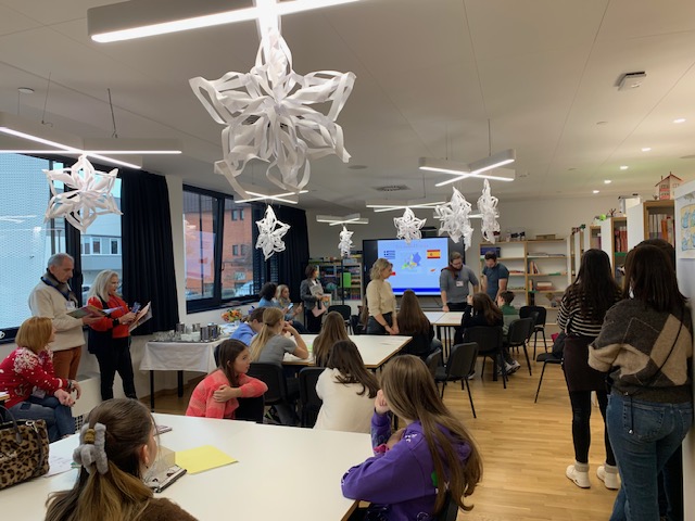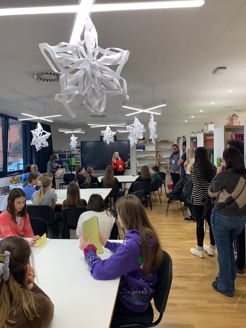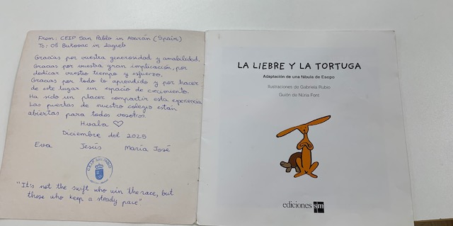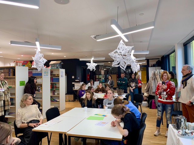 Od 1. do 5. prosinca u našoj su školi u sklopu Erasmus projekta boravili učitelji iz Grčke, Cipra, Češke i Španjolske. Promatrali su naš rad, sudjelovali u nastavi i ostalim događanjima, a u sve to bila je uključena i naša školska knjižnica. Svakodnevno smo se okupljali u knjižnici razmjenjujući ideje i iskustva, a u utorak je knjižničarka Iva Crvelin održala radionicu za učenike. Zadaci su bili maštoviti : stvaranje i dovršavanje priča na više jezika, osmišljavanje nogometne utakmice između likova grčke mitologije… U petak smo se ponovno družili na radionici Tea around Europe, ovog puta u još većem broju jer su uspjeli doći svi kolege koji su gostovali kod nas, kao i učenici (ponovno članovi Malih knjižničara i ostali zainteresirani učenici). Najprije su u opuštenoj atmosferi uz čaj i slasne zalogaje koje su pripremile naše vrijedne kuharice, učitelji iz Grčke, Cipra, Češke i Španjolske grupi naših učenika čitali odlomke knjiga na svojim jezicima, a učenici i učitelji su dobili zadatak pažljivo slušati i čuti slične riječi. Pokušali su i zapamtiti riječi na grčkom, češkom i španjolskom jeziku. Također su pokazali zavidno znanje engleskog jezika prepričavajući grčki mit. Učenici su zatim dobili zadatke, u grupama su izrađivali postere (reklame) za knjige po izboru, crtali i pisali profile društvenih mreža (Facebook, Instagram) za književne junake europske književnosti, te su čitali i osmišljavali poslovice na pet jezika i izradili jezični mural na panou. Sretni smo jer smo našim novim prijateljima pokazali kako radimo i jer se knjižnica ponovno pokazala kao “srce” društvenih zbivanja u školi.