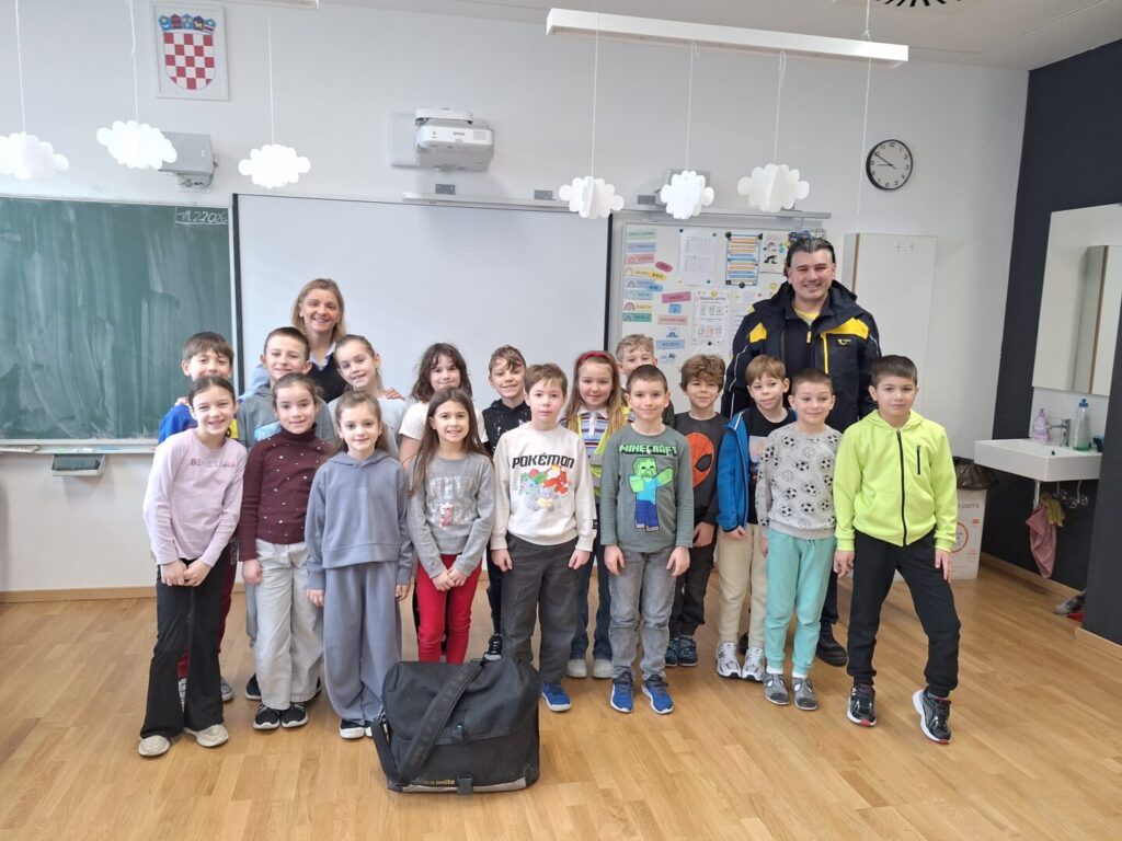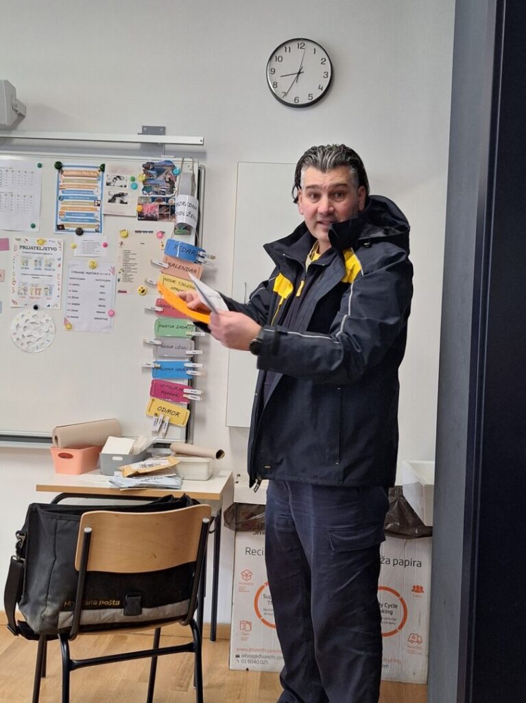 U četvrtak, 12. veljače, učenici 2.b i 2.d razreda pobliže su se upoznali sa zanimanjem poštara. U našu učionicu došao nam je gost, tata Mario Kvaternik koji je po zanimanju poštar te nas upoznao sa svakodnevnim radom poštara u pošti i na terenu. Poučio nas je o pravilnom pisanju adrese, vrstama pošiljki, pisama, o markicama i filatelistima i nasmijao nas šaljivim situacijama u kojima se pokatkad nađu poštari.